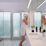 I badrummet finns även en bidé, en duschkabin och en separat toalett. Det finns hårtorkar, badlakan och handdukar för gästernas komfort.